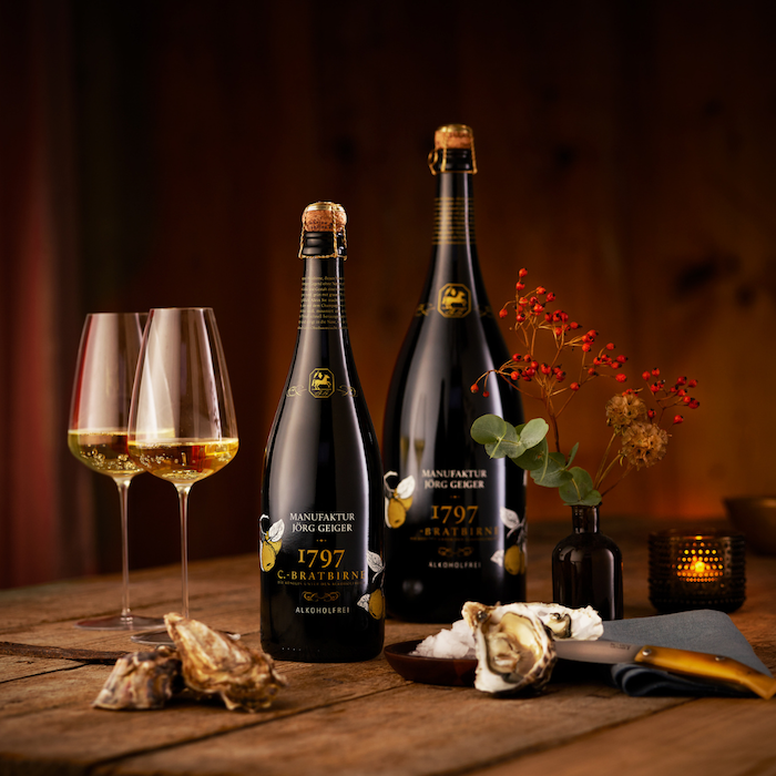 Die Manufaktur Jörg Geiger ist bekannt für ihre alkoholfreien PriSeccos und stellt bereits seit 2003 alkoholfreie Kompositionen her. Neben der bunten Vielfalt an PriSeccos gibt es noch den alkoholfreien Schaumwein CBB. CBB abgekürzt für Champagner-Bratbirne ist hier der Star des Geschmacks. Dezente Süße und harmonisch ausgeglichen zwischen Säure und Gerbstoffen. Das besondere ist die seltene, uralte Obstsorte Champagner-Bratbirne. In Württemberg wächst sie noch - auf über 100 Jahre alten Bäumen.